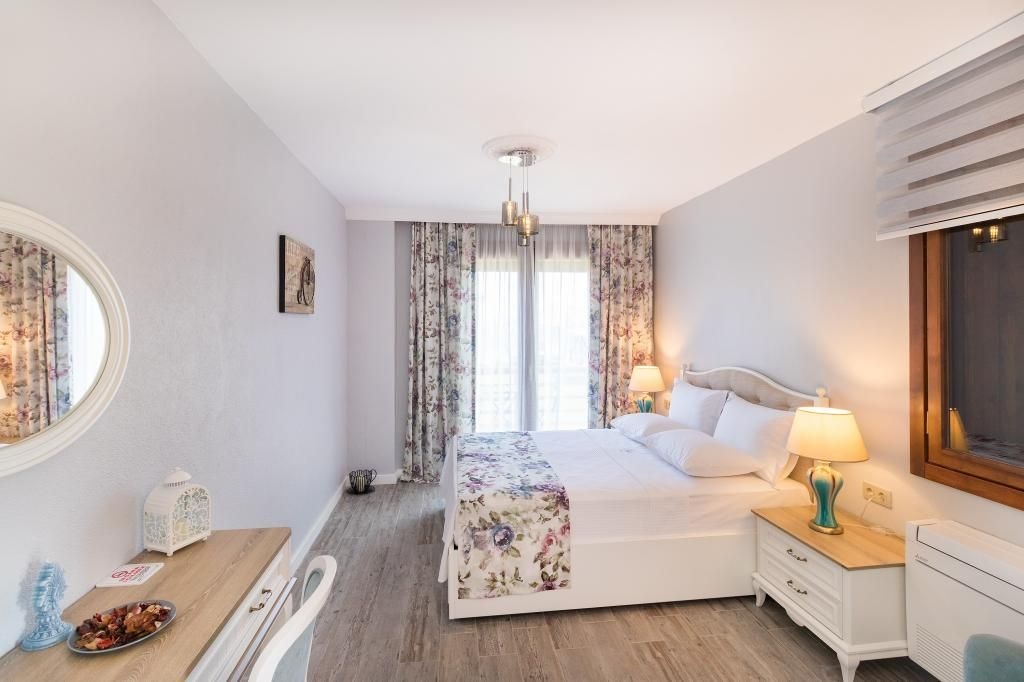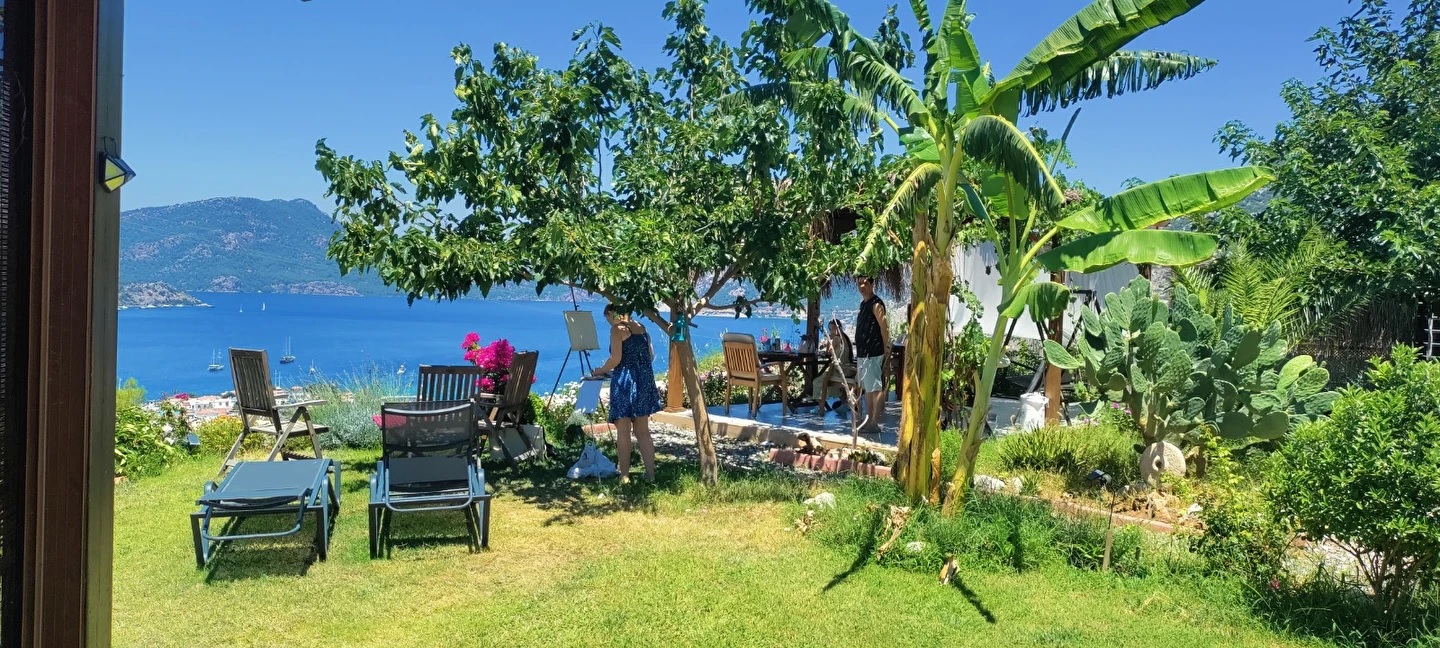 Küçük ve sevimli bir köyde/mahallede, doğallığını yitirmemiş, harika havası, doğası, badem ağaçları yanında, muhteşem bir deniz manzarası ile esintili bir yerde, yeni, sıfır malzemenin temiz ve kalitesi ile yeni başlamamızın acemiliğine şahit olmak isteyen misafirlerimizi 35 ve 30 m² özel odası olan küçük tesisimizde ağırlamak için bekliyoruz. Harika manzara eşliğinde, begonviller, turunçgiller eşliğinde badem çiçekleri ve kekik kokulu temiz havayı doyasıya içinize çekebilirsiniz.