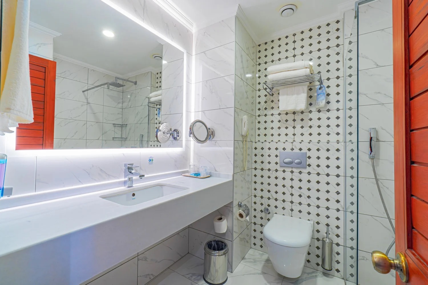 Tesisin denize bakan konforlu odalarında balkon, klima, televizyon, uydu yayını ve minibar gibi rahatınız için gerekli tüm detaylar düşünülmüş durumda. 24 saat açık resepsiyon, ücretsiz otopark, bagaj muhafazası gibi olanaklarla konforlu bir konaklama deneyimi destekleniyor. Fitness merkezi tüm gün hizmet vererek tatil sırasında formunu korumak isteyen misafirlere avantaj sağlıyor. Ayrıca hamam ve sauna gibi SPA olanakları da tesiste dinlenme ve yenilenme imkânı sunuyor.