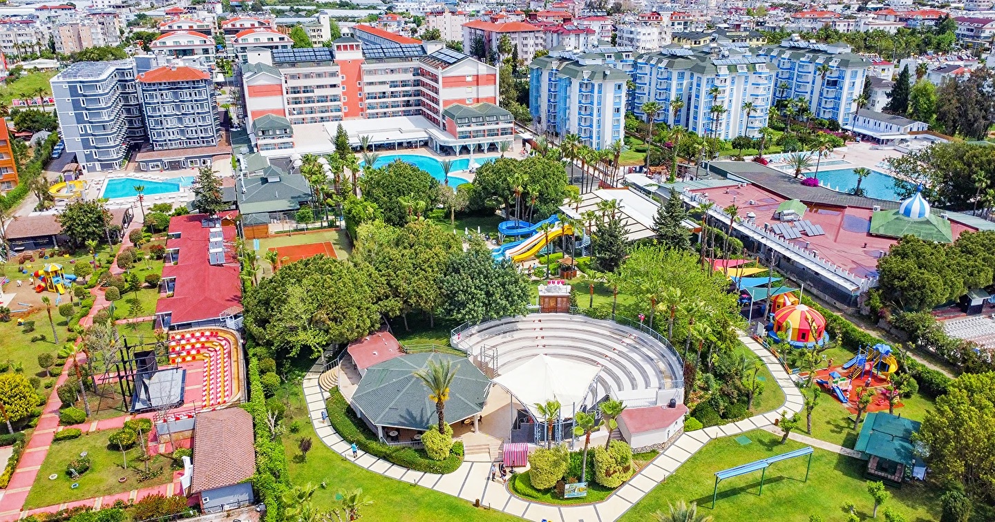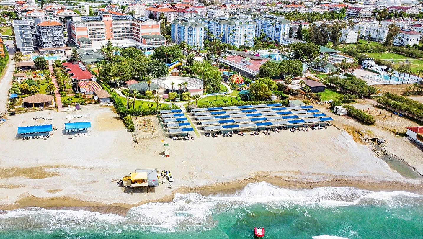Alanya’da hizmet vermektedir. Denize sıfır konumda yer alan otelin misafirlerine özel kum plajı bulunmaktadır. Bunun yanı sıra 3 adet havuzu mevcuttur. Donanımlı bir SPA merkezine sahip olan otel her şey dahil konseptiyle hizmet vermektedir. Tüm aile bireylerine uygun eğlence ve aktivite imkanına sahip olan otelde engelli misafirlere özel odalar da bulunmaktadır. Ayrıca toplantı salonları da mevcuttur.