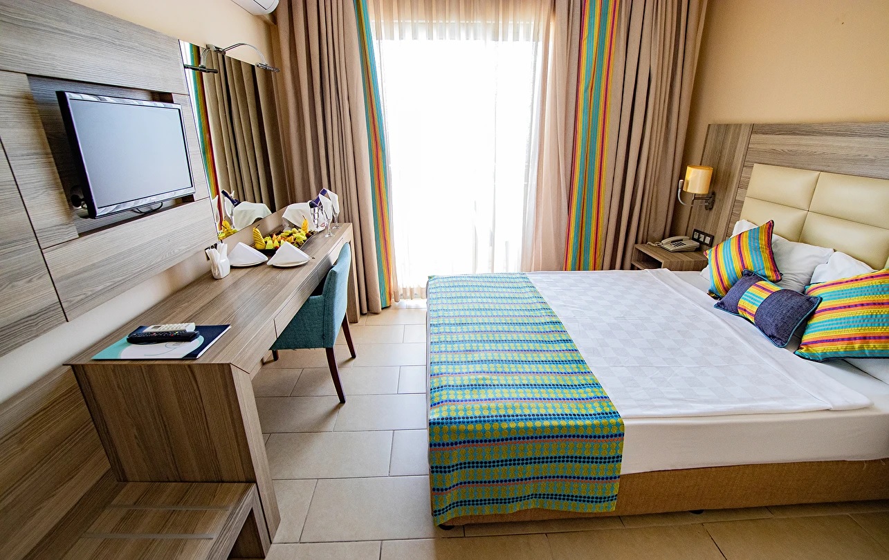 Toplam 294 oda 700 yatak(197 standart oda, 95 aile odası, 2 engelli odası) standart odalar 20m2, aile odaları 25 m2, tüm odalar balkonlu ve zemin seramik kaplı, split klima, emanet kasa, minibar, televizyon, direk telefon, saç kurutma makinesi, uydu yayını.