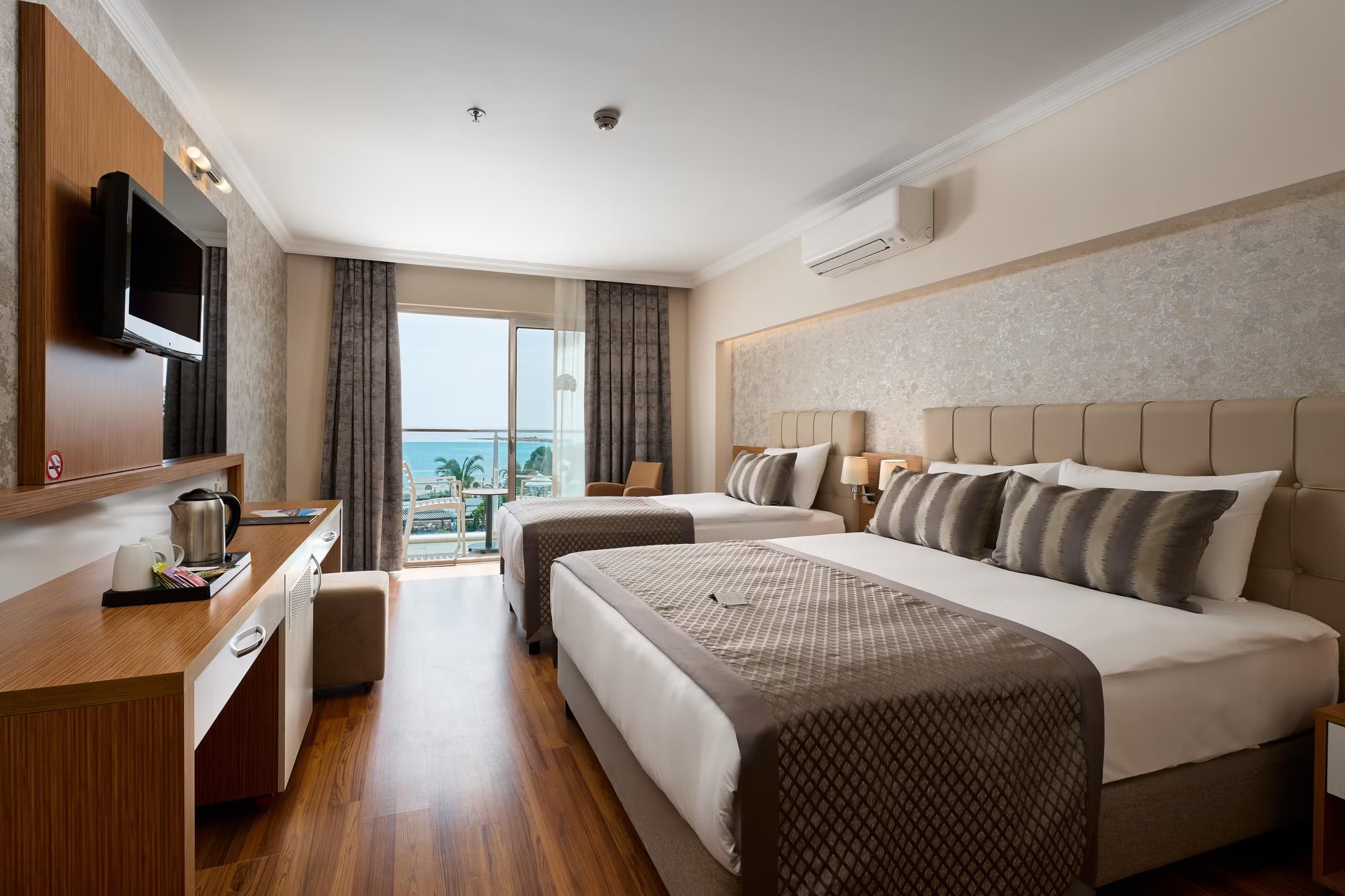 Her oda ihtiyaçlarınızı karşılamak için dizayn edilmiştir. Elektronik anahtar kartıyla erişim sağlanan odada ayrıca split klima, oturma alanı, elektronik kasa, laminant parke zemin, banyoda telefon, direkt hatlı telefon, saç kurutma makinesi, minibar, TV ve balkon bulunmaktadır. Odaların yarısı deniz, diğer yarısı ise kara manzaralıdır (orman ve/veya sokak manzaralı).