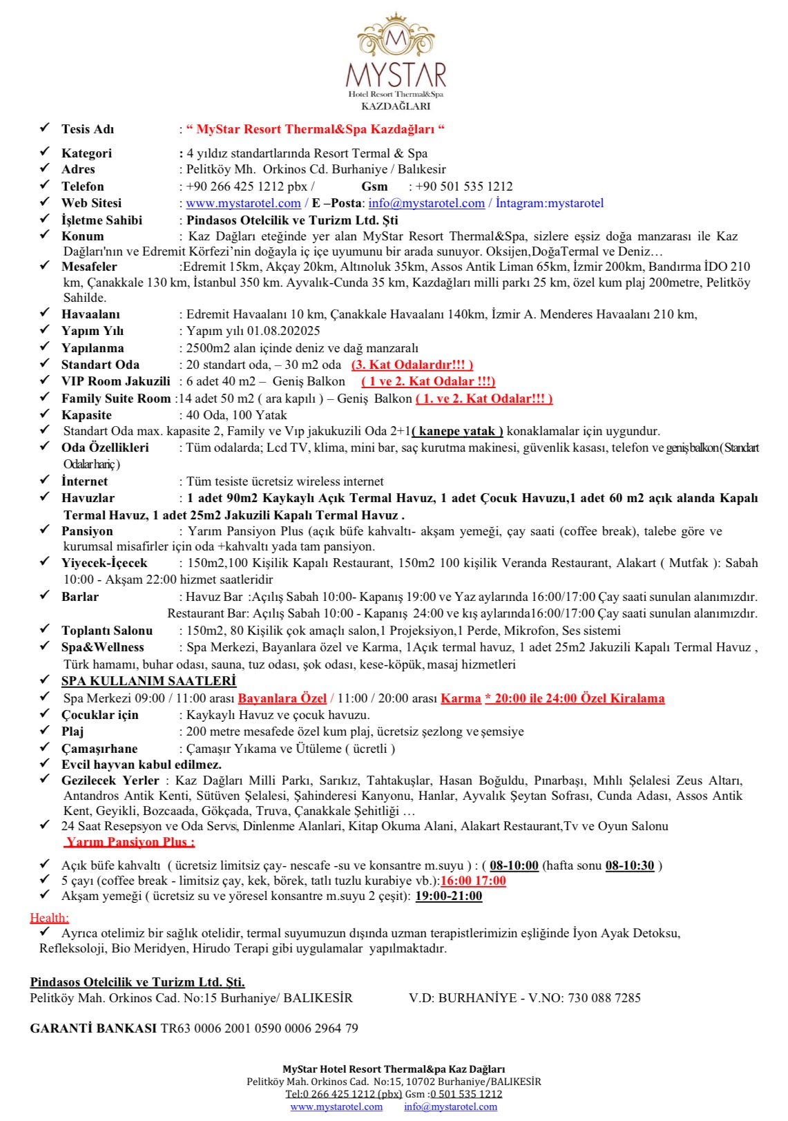 Kaz Dağları eteğinde yer alan MyStar Resort Thermal&Spa, sizlere eşsiz doğa manzarası ile Kaz