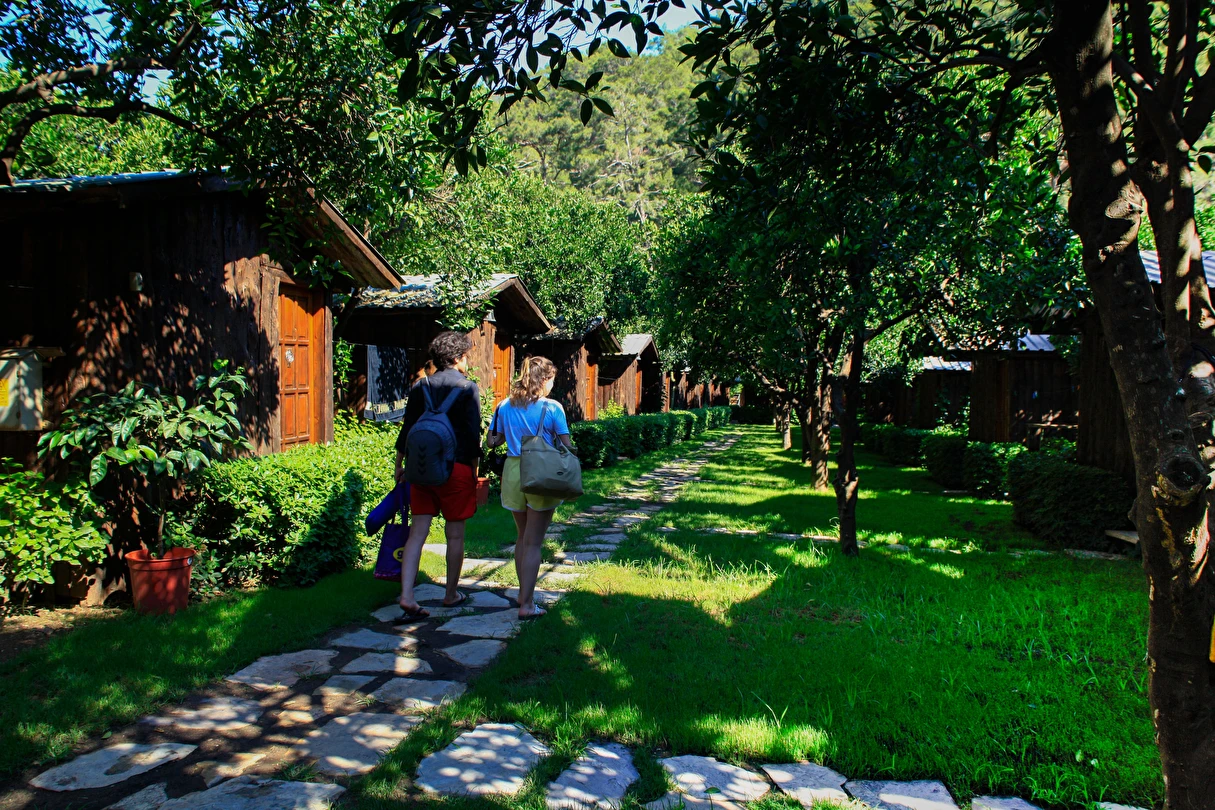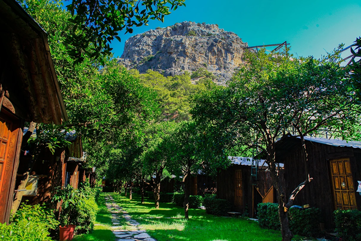 Korsan Pansiyon doğal güzellikleriyle Dünyada ün yapmış ve devletçe koruma altına alınmış olan Olympos’un tam ortasındadır. Bu bölgede büyük oteller yapmak kesinlikle yasaktır. Böylelikle siz değerli misafirlerimize doğa ile iç içe yaşama imkanı sunulmaktadır. Tesisimiz dağların arasında ki portakal bahçesin içersinde küçük ağaç evler şeklinde, çok sade ve doğal biçimde yapılmıştır.